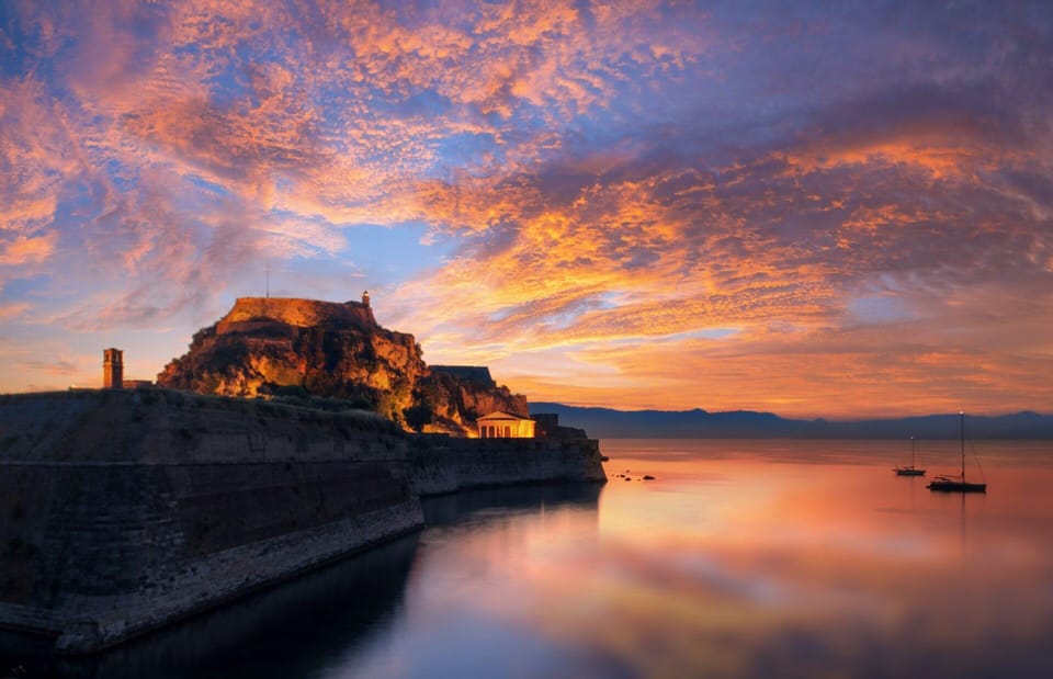 You’ll cruise along the dramatic coastline, passing by significant landmarks such as the imposing Old Fortress and New Fortress, which guard the entrance to the town, their ancient stones glowing warmly in the fading light. The iconic Mouse Island (Pontikonisi) and the Vlacherna Monastery will appear as if painted against the stunning backdrop of the Ionian Sea, offering perfect photo opportunities. This is Corfu at its most picturesque.